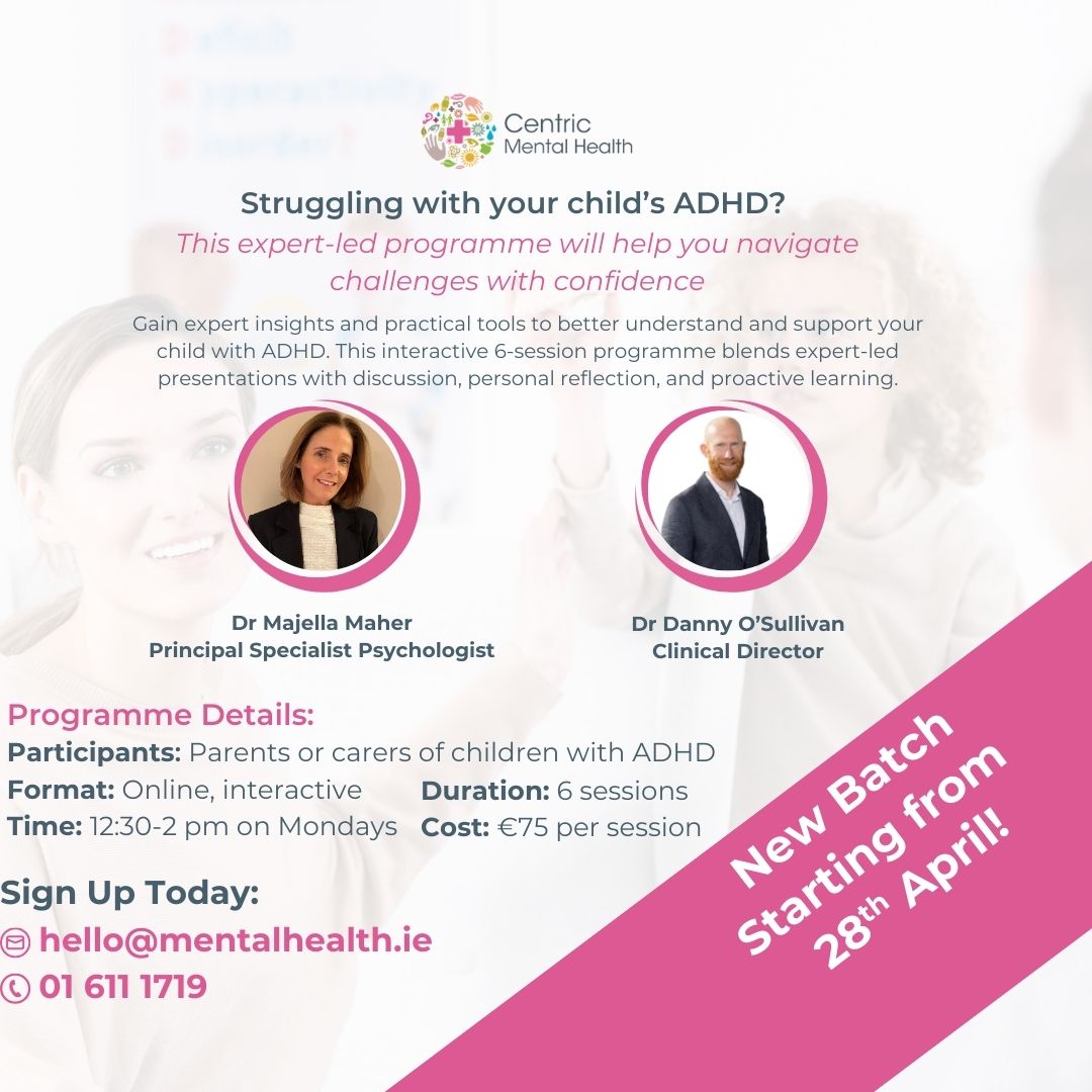 We are offering a 6-week online program designed specifically for parents like you. This expert-led, interactive course will provide you with the knowledge and tools to better understand ADHD and support your child's development in meaningful ways. New Group starting soon!